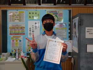 続いて、4階集会室の蛍光灯交換を快く引き受けてくれた2年生男子が受賞しました。