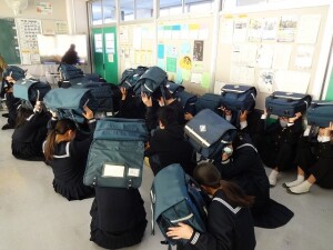 竜巻被害の対応についての避難行動は初めてでしたが、生徒たちは整然と避難態勢をとって、避難解除の指示があるまで静かに待機するなど、真剣に訓練に参加してました。