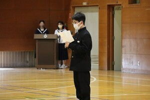 先輩方に迎えられての入場ではやや緊張した表情でしたが、生徒会本部役員の紹介や各部の部活動紹介の時にはすっかりとリラックスして、忍中生みんなが和気あいあいとした和やかな雰囲気で会が進みました。
