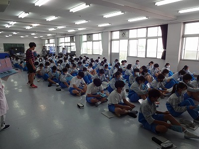 修学旅行の出発を翌日に控え、3年生が直前の準備集会を行いました。