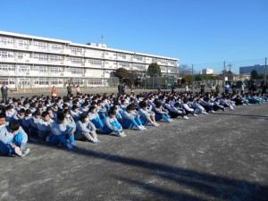 1月10日(水)第1校時に、火災を想定した避難訓練を行いました。教頭先生の緊急放送をうけて、全校生徒が無言で整然と校庭へ避難することができました。体育館が工事中のため、普段とは違う避難経路となりましたが、落ち着いて行動できました。