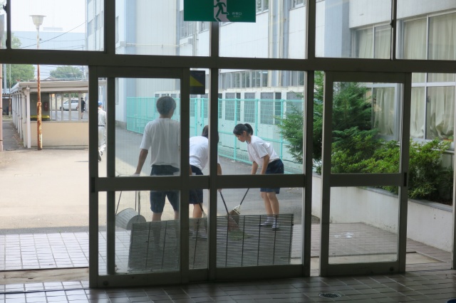 明日で1学期も終わります。今日は学年集会や学級活動の後にみんなで大掃除をしました。忍中の生徒は本当によく掃除をします。特に3年生は自分から進んで掃除をしています。素晴らしいです。生徒が帰った後、各クラスの整美委員が残り、教室の床にワックスを塗ってくれました。今日も暑い1日でしたが、その中でも大掃除にしっかり取り組めました。