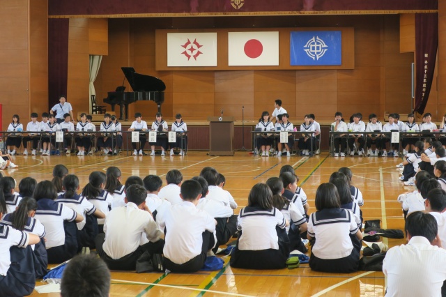 6月12日生徒総会が開催されました。提案された5議案について、事前に各学級で討議し、当日の総会で質疑や意見が述べられました。採決の結果すべて原案通りに可決しました。全生徒がしっかりとした態度で臨んでいました。また、議長団の進行や本部役員や部長、委員長の回答も素晴らしいものでした。「自治・協同・勤勉」の校訓にふさわしい生徒総会でした。