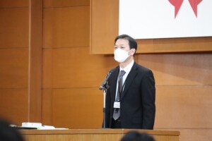 12月24日(金)に2学期終業式を行いました。今回の式は、感染状況が落ち着いたので、全校生徒が体育館アリーナに集まって行いました。式では、各学年の代表生徒が、2学期を振り返って発表しました。また、52名の表彰を行いました。