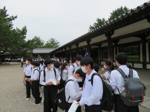 続いて、東大寺を見学し、想像以上に大きかった大仏と想像以上にたくさんいた鹿たちに驚きながら、仲間どうし笑顔で話しながら行動していました。
