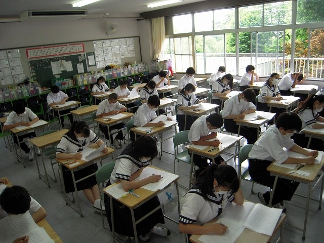 実力テストですので、通知票の成績には影響しませんが、今後の進路選択、特に学校選択においては重要な資料となりますので、どの生徒も疲労のたまっている週末でしたが、強い心で勉強に励み本日のテストに臨んでいました。
