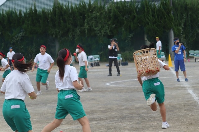 残念ながら今回も1年生で学級閉鎖があり、全学級参加の体育祭となりませんでしたが、これまで高めてきた学級の絆を披露するため、参加選手全員で力一杯競技に取り組みました。