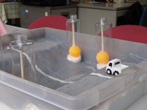 出品された作品は、「通せん棒」と名付けられた水害時に車両が冠水した地下道へ侵入しないように注意喚起の表示を行うというアイデアです。