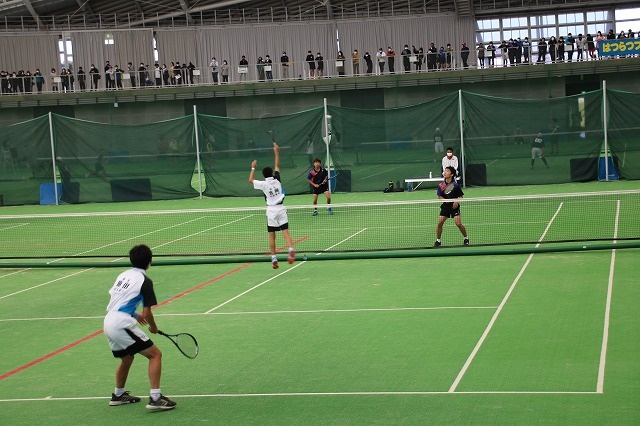 本校から出場した2年生ペアは、1回戦を4-3の接戦で勝ち抜き、2回戦へと進みましたが、相手ペアになかなか思い通りのプレーをさせてもらえず惜敗となりました。
