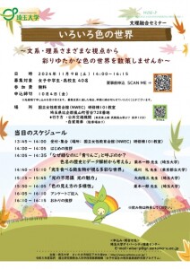 埼玉大学では、女子中学生、女子高校生及びその保護者を対象に、11 月9 日(土)文理融合型課題解決ワークショップ「いろいろ色の世界」を開催します。2024年 文理融合型課題解決ワークショップ